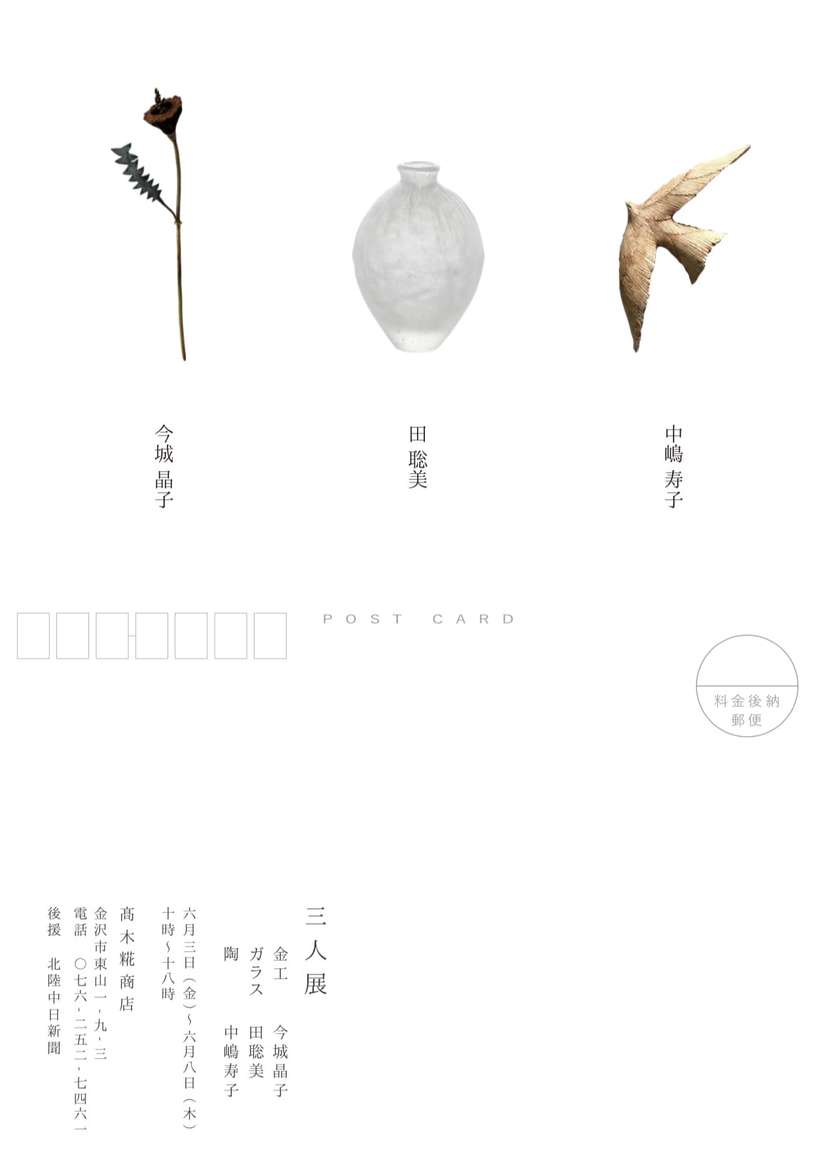陶芸:南絢子 漆芸:山岸紗綾 染:宮崎岳志